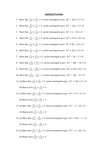 39 grade 7 math worksheets algebra like fractions
